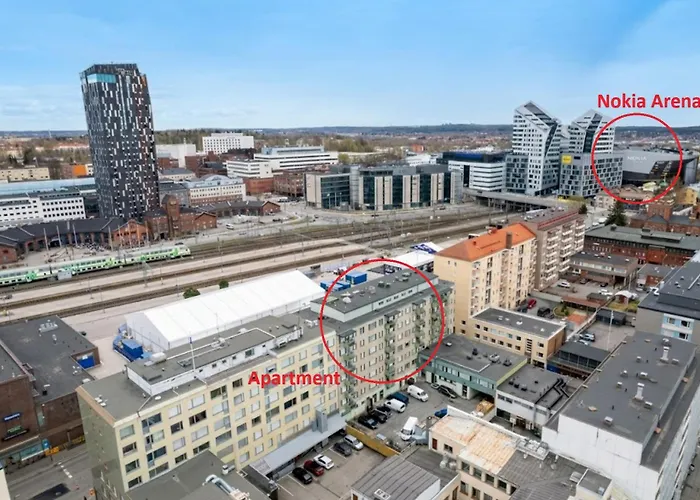 1Br Next To Railway Station & Nokia Arena Lägenhet Tammerfors ligger inom 14 minuters promenad från Arbetarmuseet Werstas och har utsikt över staden. Den 52 m² stora lägenheten erbjuder också en allmän parkering i närheten.